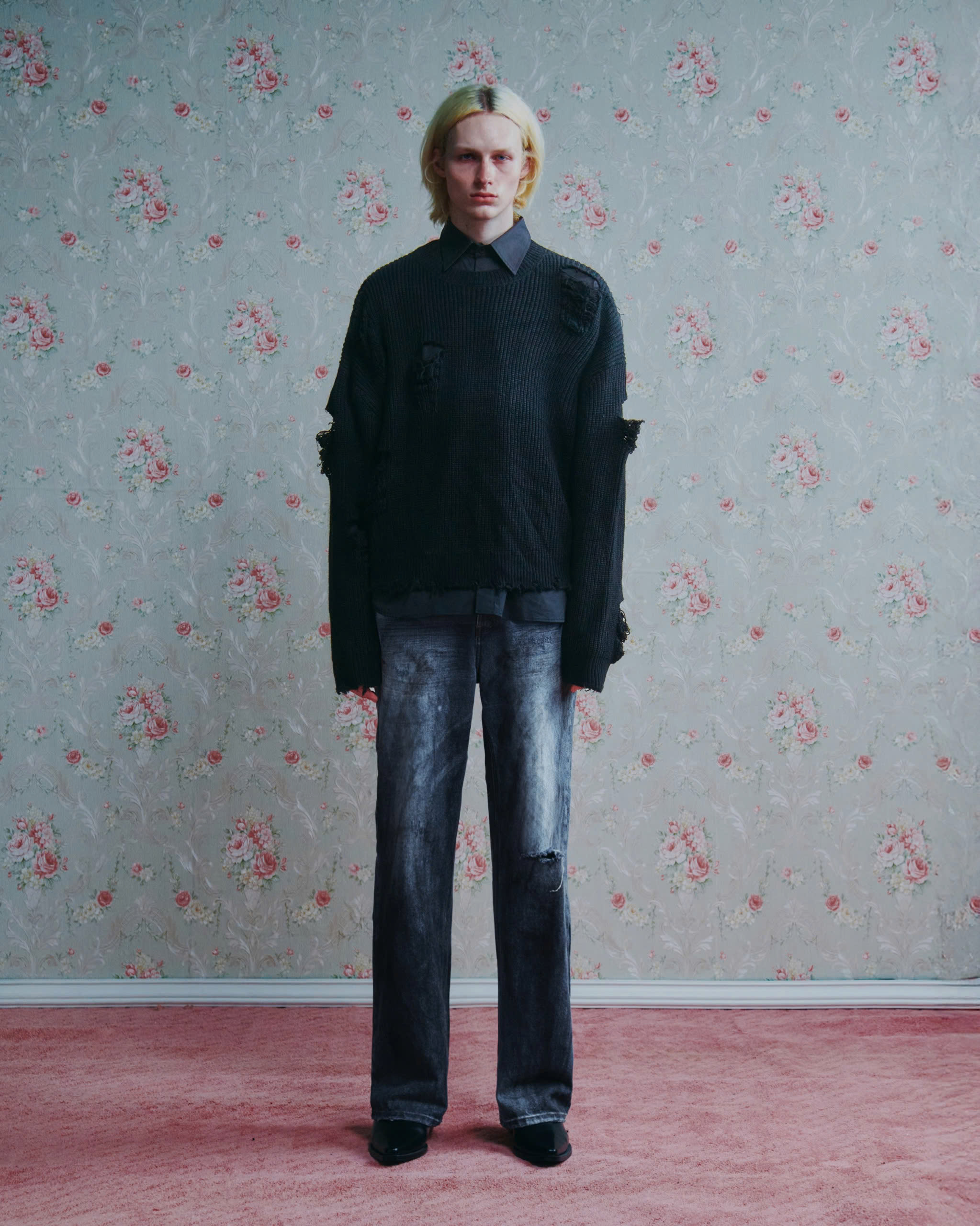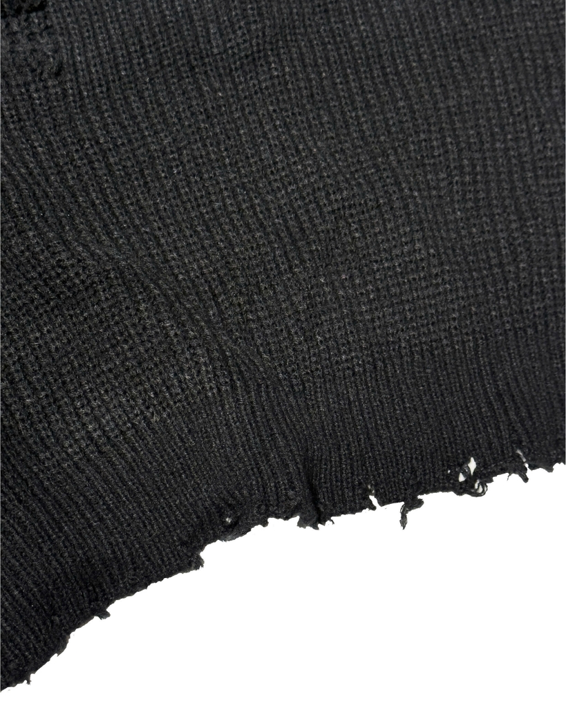 Mô tả: Chất len mềm, cấu trúc dệt thoáng khí, các chi tiết rách được xử lý ngẫu nhiên.