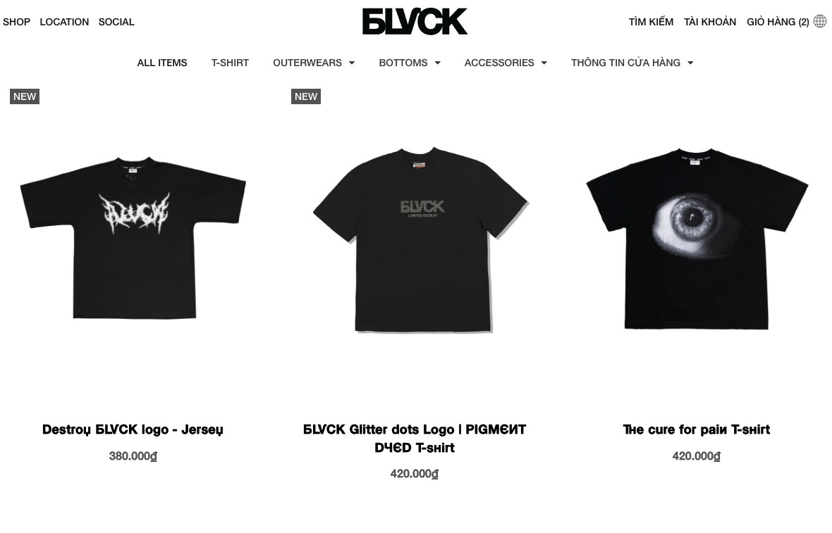 Bước 1: Truy cập website và lựa chọn sản phẩm: khách hàng có thể xem được tất cả các sản phẩm ở mục ALL ITEMS, kéo màn hình để xem được toàn bộ sản phẩm, hoặc có thể tìm theo loại sản phẩm ở mục TÌM KIẾM.